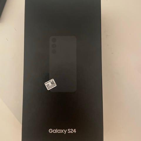 Samsung Galaxy S24 Ultra mobiltelefon med 512 GB internminne. Modellen har stor pekskärm och levereras enligt bild tillsammans med originalförpackning. Färg: svart.