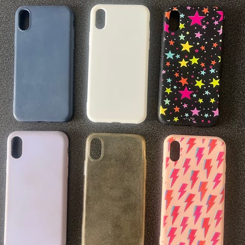 Ett parti med mobilskal för olika iPhone- och Samsung-modeller. Skalen inkluderar en variation av färger, mönster och material, såsom plånboksfodral, skal med strassdetaljer, marmormönster och enfärgade alternativ. Perfekt för den som vill variera utseendet på sin telefon. Allt för 100:-