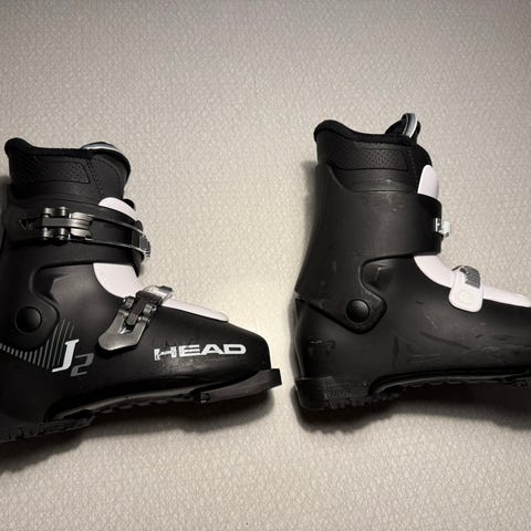 Head pjäxor i färgen svart/vit. Storlek 23.5 som motsvarar 37. Utrustade med flera spännen och remmar för att justera passformen runt fot och underben. Använt bara en vinter.