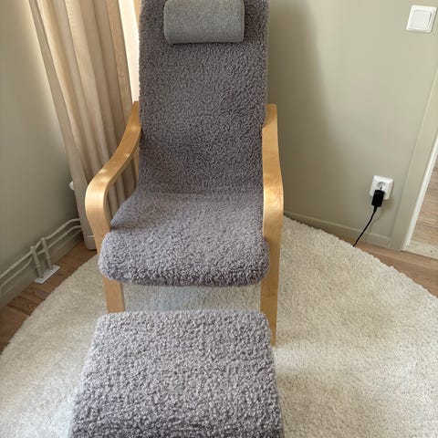 Fotölj och fotpall från Mio i nyskick knappt 1 år, efter inflyttning fick den inte plats.