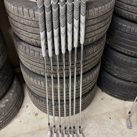 Titleist 735 CM vänster J-2 järnklubba med stålskaft. Klubban har Dynamic Gold-skaft och grepp från Golf Pride. Greppet är 1 säsong gammalt.