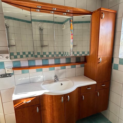 Renoverar om och säljer ett litet kit bestående av spegelskåp, handfat/tvättställ och kommod. Nedmonterat och klart.