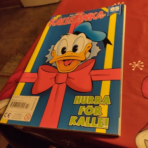 Jag säljer nu en serietidning med Walt Disney's Kalle Anka med titeln "Kalle och vikingaspöket". Tryckt serietidning i färg med Kalle Anka som huvudfigur på omslaget. Innehåller tecknade serier på svenska med ank-karaktärer i vikingamiljö. Lämplig för läsning och samling för den som är intresserad av Kalle Anka-serier.