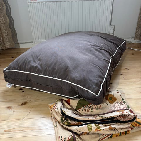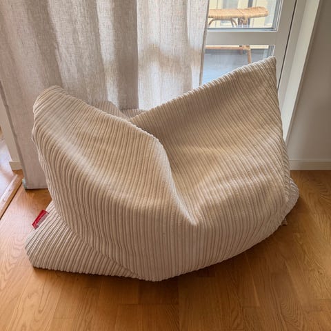 Jättefin stor saccosäck/sittsäck. Inte jättemycket kulor i den nu. Kan fyllas på med mer om man vill ha en fastare sittkomfort. Funkar också bra som den är.