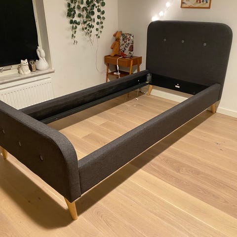 Jysk sängram beige tyg med ribbotten