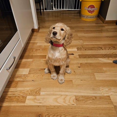 Han är en 11-månaders unghund med mycket energi och glädje i kroppen. Han är arbetsvillig och trivs med träning, tydlighet, aktivering och gärna lite bus. Han passar därför bäst hos någon som lever ett aktivt liv och som vill arbeta både fysiskt och mentalt med sin hund.