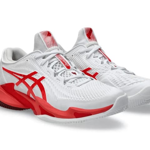 Löparsko för herr i storlek 44. Skon har ovandel i syntetmaterial i huvudsakligen vitt med detaljer i orange, rött och svart. Sulan är tjock med markerad mellansula i flera färger, utformad för dämpning och stabilitet vid löpning eller annan träning. Passar för olika typer av sport- och fritidsaktiviteter på hårt underlag.