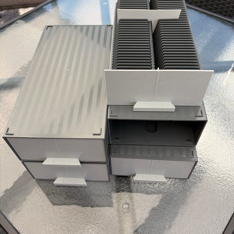 Ativa AT-714 miniräknare med tydlig display och numeriska samt funktionstangenter för bland annat procent- och minnesberäkningar. Esselte hålslag i vit plast/metall med greppvänligt handtag, anpassad för håltagning i papper. TimeButler liten skrivtavla eller planeringstavla med tillhörande penna. Setet innehåller även dokumentställ och tidskriftsamlare i plast samt ett grått fackindelat lådinsats för sortering av mindre kontorssaker. Lämpligt för grundläggande kontors- eller hemmakontorsanvändning med fokus på organisering av papper och enklare beräkningar. Allt i nyskick