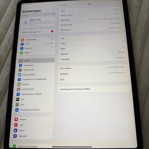 Säljer min iPad Pro 11 tum (M2, 128 GB) i färgen Space Gray. i mycket fint skick – sparsamt använd, inga repor eller skador och fungerar som ny.