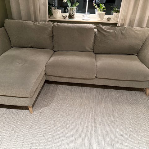 Jag säljer nu min beiga soffa då jag ska flytta ut och soffan är alldeles för stor, köpte denna soffa för cirka 1 år sedan och den är som ny. Soffan har specialgjorda ekben som tillval och den köptes för 16 500 kr