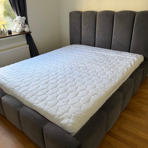 Lyxig kontinentalsäng byggd på massiv sängram av limträfaner 18 mm.