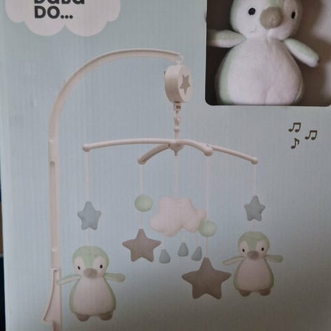 Fisher-Price spjälsängsmobil med projektor och musik. Mobilen fästs på spjälsängen och har roterande mjuka figurer i form av nallar. Överdelen fungerar som projektor som lyser upp taket med stjärnor. Produkten har knappar för att styra ljus, musik och rörelse samt en separat fjärrkontroll. Lämplig som lugnande leksak och insomningshjälp för små barn i spjälsäng eller barnsäng.