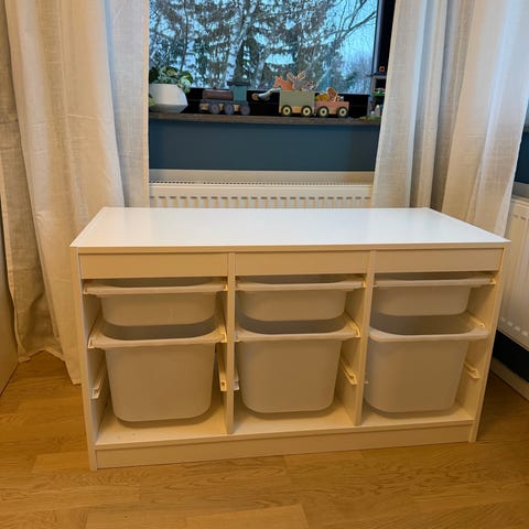 Trofast förvaring från Ikea med nio vita backar. Perfekt till barnrummet!