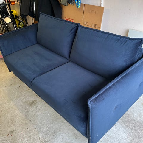 Vi gör om i barnets rum och vill att någon annan får användning av denna barnsoffa. Se mått på bild två.