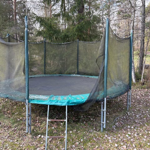 Funkar felfritt men behöver ny kant skydd innan någon ska börja hoppa på den, finns att köpa på Jysk.