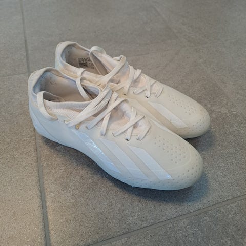 Adidas fotbollsskor med dobbar. Skorna är i vitt med röda och blå detaljer. Storlek 34-35 EU. Passar bra för lite mindre fotar och ungdomar.