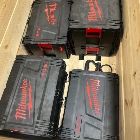 Tiger, duika, multimaster, one charging station, battery. There are two more Senco paper pistols.