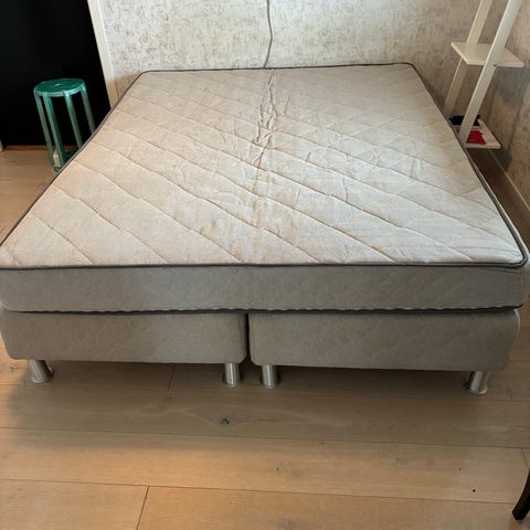 Synliga fläckar, framför allt den ena sängen, vilket framgår av bilderna. Passar som bas till säng med lösa madrasser ovanpå.