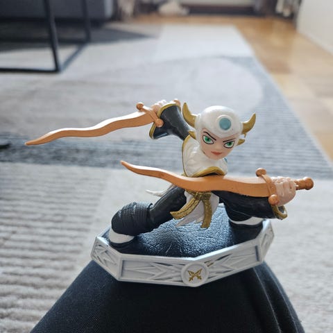Skylanders Imaginators figur föreställande en elkaraktär i krigarutrustning med stor kanon på ryggen. Figuren står på en dekorativ bas och är avsedd att användas tillsammans med Skylanders-spel och kompatibla spelkonsoler. Passar som samlarfigur eller leksak för barn som spelar eller samlar på Skylanders-serien.