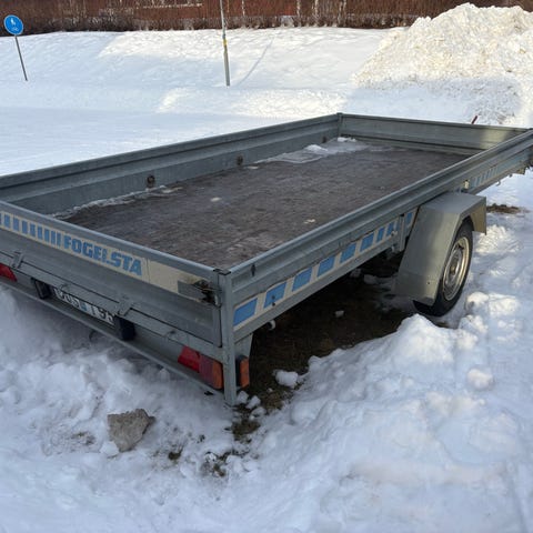 Fin obromsad släpvagn. Har använts för transport av endurohojar. Ingår 2 st Proworks MC ställ (ett är oanvänt). Nästa besiktning för släpet är 2027-06-30. Allt funkar som det ska.