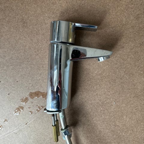 Badrumsblandare i kromad metall från Mora, Avsedd för montering på tvättställ i badrum eller toalett.