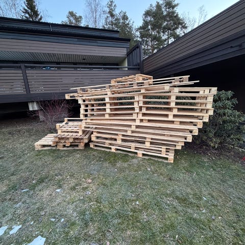Träpallar / lastpallar i obehandlat trä. Passar exempelvis för förvaring, transport eller som grundmaterial för olika bygg- och gör-det-själv-projekt.