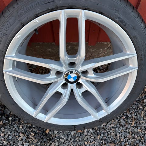 En fälgs eker har lacksläpp, går lätt att åtgärda eller köra som det är. Syns å Sista bilden.