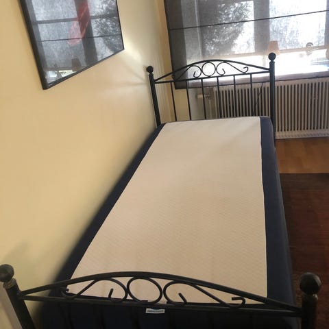 Svart järnsäng, 90×200. Madrasserna använda ett fåtal gånger.