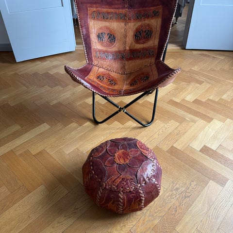 Bas av stål och sits av 100% läder. Konjak.
