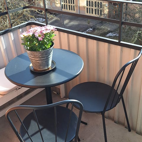 Cafe sett med metall ben/rygg/bord