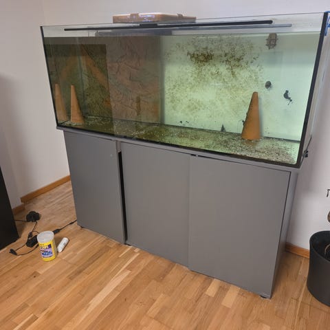 Akvarium 120L med underskåp i svart färg. Akvariet står på ett matchande skåp som ger förvaring under. Passar för sötvattensfiskar och inredning efter behov. Utrustning som doppvärmare och pump kan användas tillsammans med akvariet beroende på önskemål och typ av fiskar som ska hållas.
