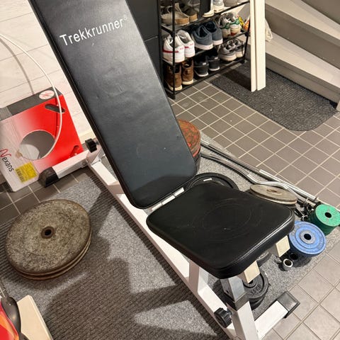 Träningsbänk med skivstång o vikter