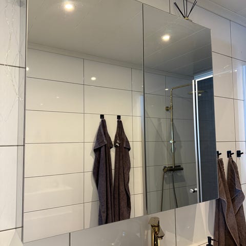 Spegelskåp med dörrar, spegeleffekt/spegelglas, 100x15x95 cm liknande Lettan från IKEA.