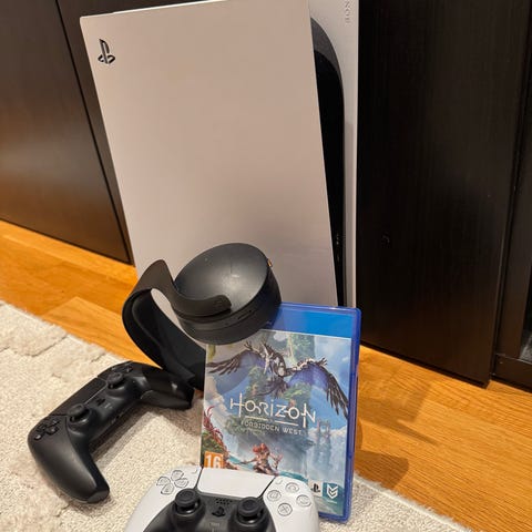 Sony PlayStation Portal handhållen spelkonsol för PlayStation 5. Enheten är vit med inbyggd skärm och kontroller på sidorna. Avsedd för fjärrspel från en PlayStation 5-konsol via nätverksanslutning. Levereras i originalförpackning enligt bild.