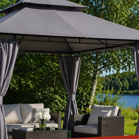 Paviljong trädgård Sunset Premium Cappuccino med sidogardiner 3x3 m