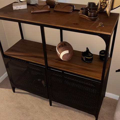 Bra hallbyrå med djupa och bra lådor i tyg för mössor och vantar och diverse annat.