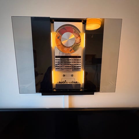 Det här samlarobjektet är svinsnyggt i hyllan och kul när det är fest. Har aldrig använt själva högtalaren då jag kör genom större, men lamporna synkar med ljudet i rummet.