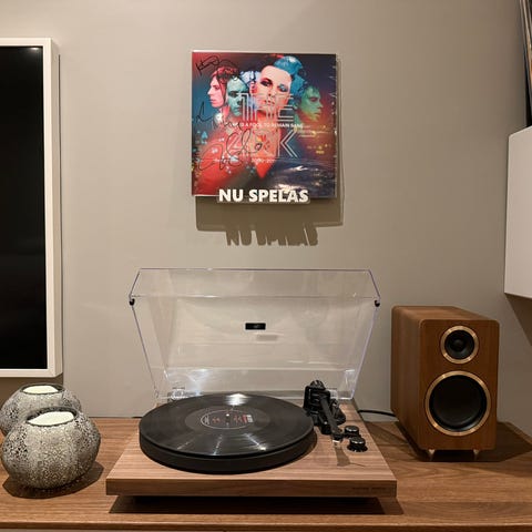 Okki Nokki skivtvätt i vit färg med integrerad dammsugarm och genomskinligt dammskydd. Enheten är avsedd för rengöring av vinylskivor och har roterande tallrik samt reglage på fronten. Levereras med originalkartong enligt bild.