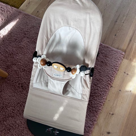 Babybjörn babysitter i färgen quiltad sand grey. Använd några få månader, i jättefint skick. Tvättad i parfymfritt tvättmedel. Leksaksbåge från Babybjörn som passar till. Nypris för allt ca 2500kr.