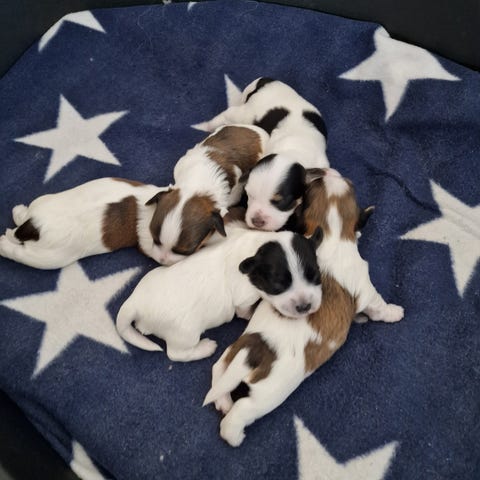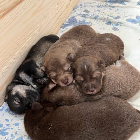 Föddes i en kull på 5 valpar.