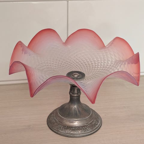 Søstrene Grene kakfat på fot rosa glas