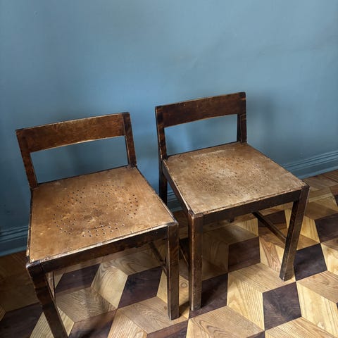 Två stolar (ev ikea äldre design?) köpta begagnade av mig och omgjorda. Betsade samt omklädda i beige/grått tyg. Se bilder för skick 🙂 1200:-/st båda för 2000:- hämtas i Handen. Snabb hämtning prioriteras.