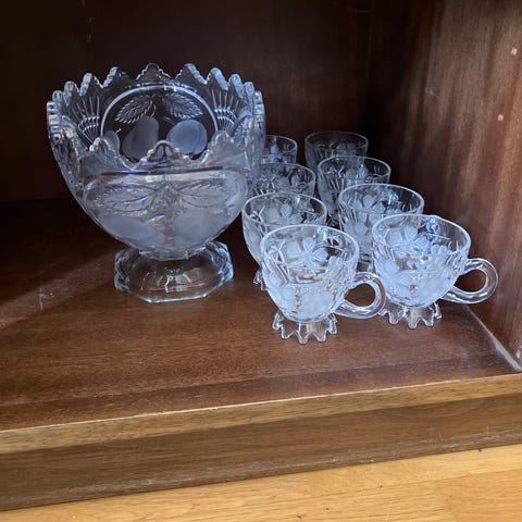 6 stycken Tradition glas med fot i genomskinligt glas med dekor i flera färger och grön fot. Glasen har rund kupa och är avsedda för servering av dryck, exempelvis dessertvin eller likör. Passar för dukning i kök eller matsal.