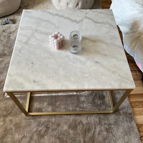 Soffbordet i glas 95x95 cm i polerad mässing. Ordinarie pris 18450 kr. Säljes för 10000 kr.