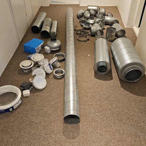 Ventilationsrör och T-koppling i metall.