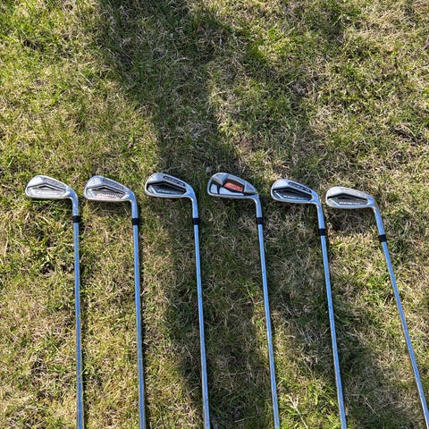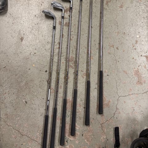 Acer Evolution golfklubbor set med järnklubbor och en hybridklubba. Setet innehåller numrerade järnklubbor 4–9 samt pitching wedge. Klubborna har stålskaft med standardlängder enligt måttbandet på bilderna. Greppen är i svart utförande. Hybridklubban är märkt Acer 5. Setet passar för allmän golfspel på bana eller träning på range.