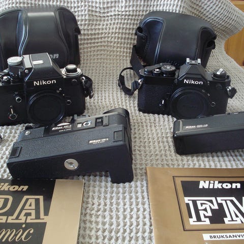 2 × Nikon FM2 (svarta kamerahus)