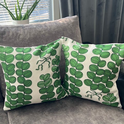 Tyget är ritad av Josef Frank från svenskt tenn. Baksidan är i enfärgad matchande tyg. Kuddfodralen är hemsydda med överlock och har en dragkedja i botten.