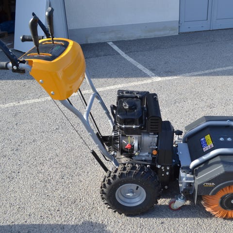 Tuchel 230 sopvals för montering på maskin med hydraulik. Hydrauliska slangar och fäste för frontmontering ingår enligt bild. Avsedd för sopning av hårda ytor som gårdar, parkeringar och industriplaner.