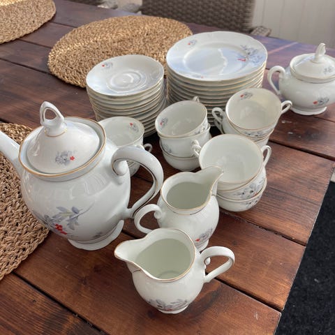 Fin kaffe servis med kanna, socker skål, mjölk kanna